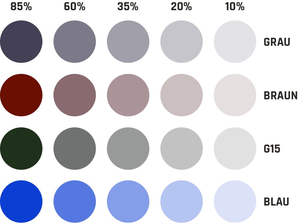 Neben den Standardfarben braun, grau und G15 in den Intensitäten 15 - 85 % fertigen wir ganz nach individuellem Wunsch. Ob Verlauffarben nach Wunsch, Kantenfilter oder andere Filterfarben. Die Vielzahl unserer Tönungen ist auf unseren Brillengläsern anwendbar und kann auch mit spezieller Verordnung gefertigt werden. Sprechen Sie uns bei Fragen gerne an.